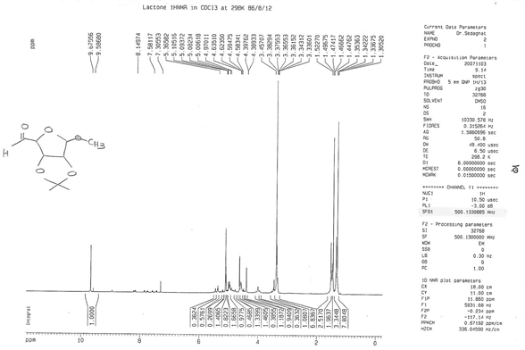 Figure A4. HNMR “6-Methoxy-2, 2-dimethyl-tetrahydro-furo [3, 4-d] [1, 3] dioxole-4-carbaldehyde”.