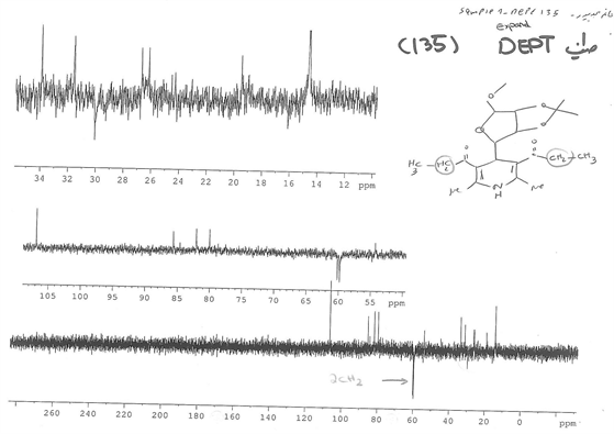 Figure A8. NMR-DEPT “4-(3,4-Dihydroxy-5-methoxy-tetrahydro-furan-2-yl)-2,6-dimethyl-1,4-dihydro-pyridine-3,5-dicarboxylic acid 3-ethyl ester 5-methyl ester”.