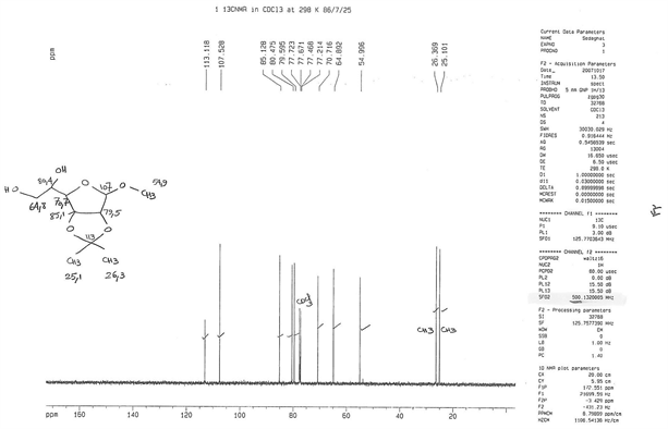 Figure A2. CNMR “methyl-2,3-O-isopropylidene-mannofuranoside”.