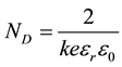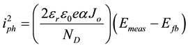 where ND denotes the donor density, εr the relative dielectric constant of the TiO2 anodic film (55) [66] , ε0, the vacuum permittivity (8.86 ´ 10−14 F・cm−1), e the charge of an electron (1.602 ´ 10−19 C), and α the light absorption coefficient for the material.