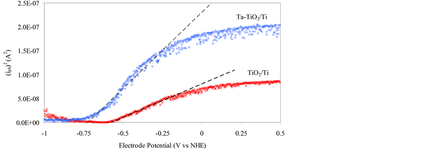 Table 1. Photo-electrochemical characteristic of TiO2/Ti and Ta-TiO2/Ti anodes.