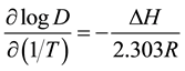 in which C = C1 + C2. The differential form of Equation (7) against (1/T) can be re-written as follow: