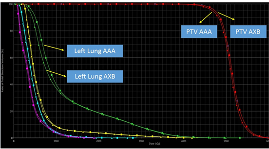 Finally; in our study comparing the V5 and V20 doses for Body-PTV, it was found that there was no significant relationship between AAA plans and AXB plans (p > 0.05)