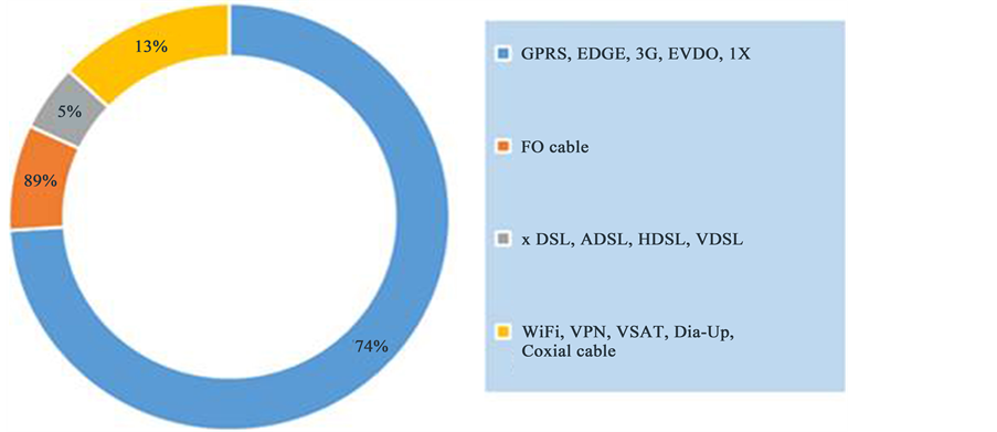 Figure 1. Types of Internet connectivity usage by types source: white paper on ICT development, Mongolia-2013.