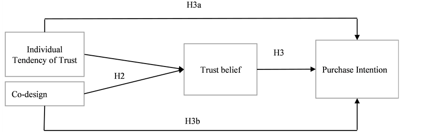 Hypothesis 3: Trust belief is a mediator for co-design, individual tendency of trust and purchase intention.