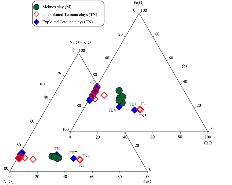 Tetouan and Meknes clay materials are composed mainly of SiO2, Al2O3, and Fe2O3. Meknes clays are charac- terized by a higher CaO content.