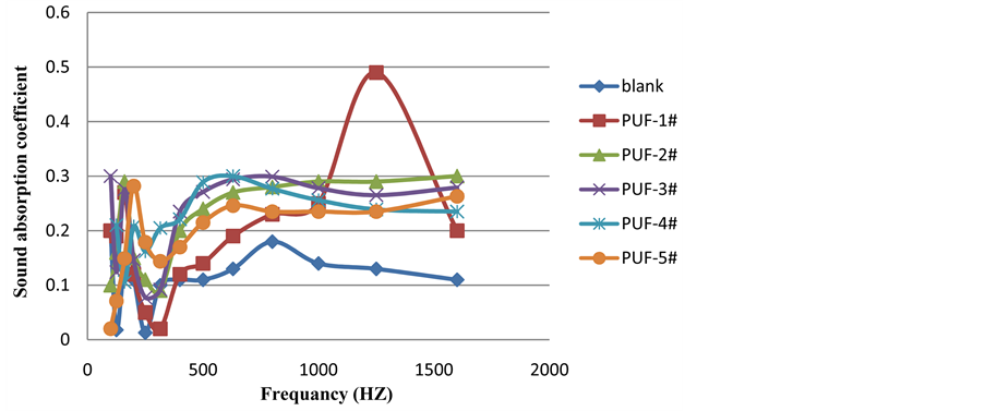 Table 5. Sound absorption coefficient for polyurethane mortar mixes.