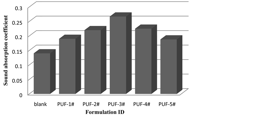 Figure 8. Relation between sound absorption coefficient and different formulations from polyurethane foam contains dissimilar dosages from tin catalyst.