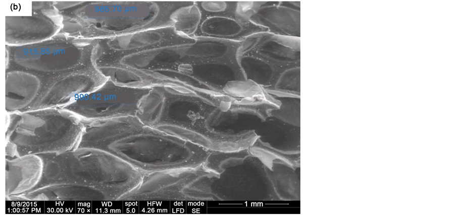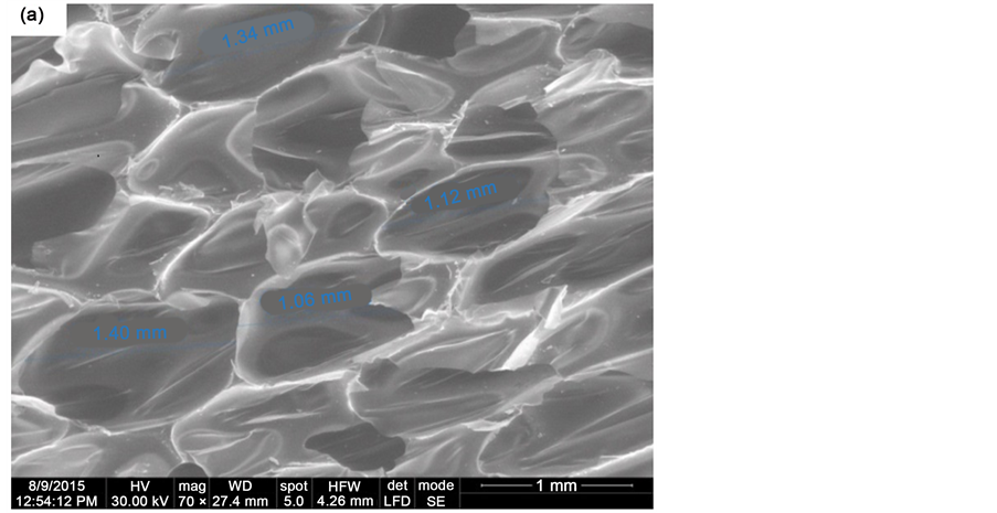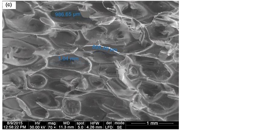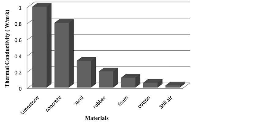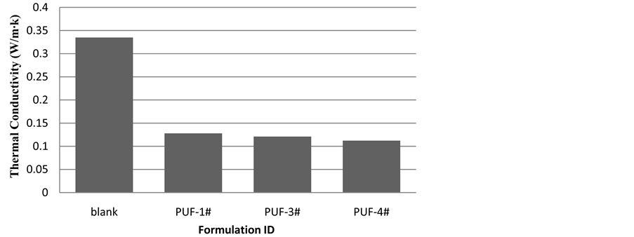 Analysis of data in Table 6 indicates that foam has low thermal conductivity comparing with limestone, concrete, sand and rubber. This could be due to cellular structure of foam material as shown in Figure 9. It is clear from the results in Table 7 that the thermal conductivity is very low for polymeric foam comparing with sample containing no polymer (Blank) as shown in Figure 10 because polyurethane foam consists of 92% to 98% of closed cells which are filled with insulating gases. Only 8% to 2% of the foam is solid polyurethane polymer [20] . The percentage of solid polymer is determined by the density of the foam: the lower the density of the foam, the lower the percentage of solid polymer. The closed cells are filled with several gases released by blowing agents during the manufacture of the polyurethane foam.
