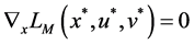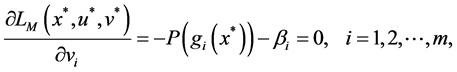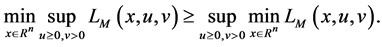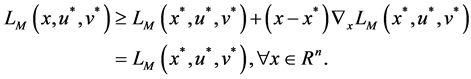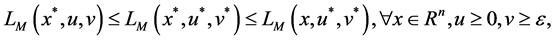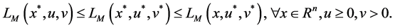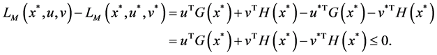 By (10), the saddle point shows the connection between the dual problem and the original problem. The optimal solution to the original problem can be obtained by the optimal solution to the dual problem and the zero gap exists in Theorem 2. The following Theorems 3 and Theorem 4 show that under the condition of convexity, saddle points are equivalent to the optimality conditions of the original problem. By (10), we have