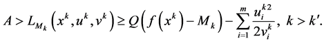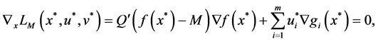 All augmented Lagrangian functions consist of two parts, a Lagrangian function with a Lagrangian parameter and a penalty function with a penalty parameter (see [2] - [8] ). Dual and saddle point is the key concerns of augmented Lagrangian function. Moreover, zero gap of Lagrangian function’s dual is true only for convex programming and augmented Lagrangian function. Therefore, augmented Lagrangian function algorithms solve a sequence of constrained optimization problems by taking differential Lagrangian parameters and penalty parameters in [2] [3] [4] [5] . Lucidi [6] and Di Pillo et al. [7] obtained some results of exact augmented Lagrangian function, but numerical results were not given. R. S. Burachik and C. Y. Kaya gave an augmented Lagrangian scheme for a general optimization problem, and established for this update primal-dual convergence the augmented penalty method in [8] . However, when it comes to computation, to apply these methods, lots of Lagrangian parameters or penalty parameters need to be adjusted to solve some unconstrained optimization dual problems, which make it difficult to obtain an optimization solution to the original problem. Hence, it is meaningful to study a novel augmented Lagrangian function method.