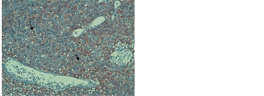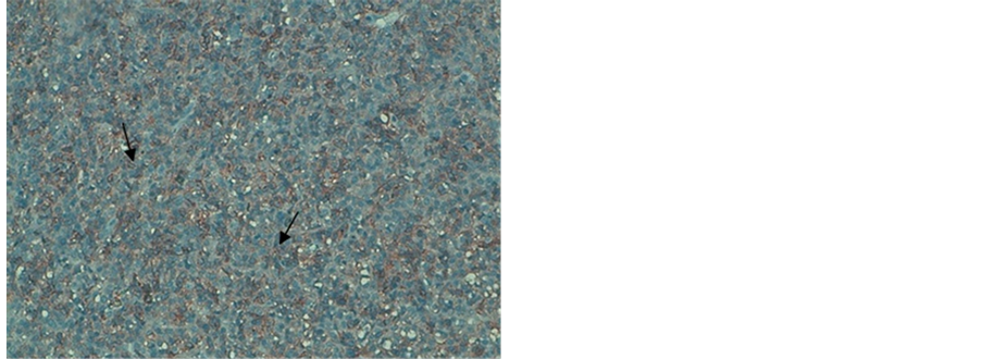 Figure 4. Immunohistochemistry. (a) positive immunohistochemistry for the CD117; (b) positive immunohistochemistry for the CD34.