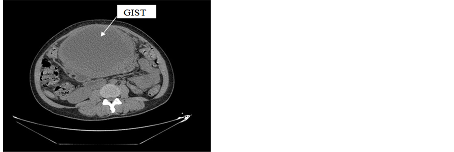 Figure 3. Axial view of the stromal tumor in abdominal CT.