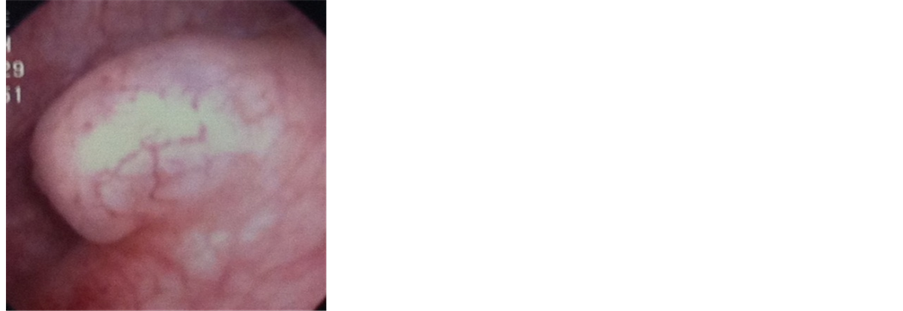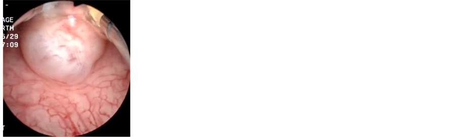 Ureteroceles are more common in women, with the female to male ratio of 4 to 1 [3] . Ureteroceles are bilateral in 10% and occur in 80% in upper poles in duplex systems [4] . This case was a simple bilateral single system ureterocele located in a normal ureteric orifice. A simple ureterocele usually has few symptoms. Symptoms that lead to the discovery of a simple ureterocele include urinary tract infection, sharp pain caused by a calculus in the ureterocele, dysuria caused by a huge cele that obstructs the internal urethral orifice, or a palpable abdominal tumor that acts like a huge cele [5] . A case of prolapse of a simple ureterocele presenting as perineural tumor was reported in a young woman [6] . Treatment of simple ureteroceles is generally conservative. If recurring urinary tract infections caused by urinary tract obstruction, cannot be resolved by treatment with antibiotics or VUR, surgical treatment may be considered. Transurethral incision is often performed for ureteroceles, and VUR is a common surgical complication [7] . This patient’s chief complaint was urgency and pain on urination, which rarely leads to suspicion of a uretocele. He had no episodes of repeated urinary tract infection or VUR, but based on the cystoscopy findings, we have concluded his symptoms might have been caused by expansion of the ureteroceles and tugging of the vesical trigon at the time of urine discharge. We also have concluded that the symptoms would have improved following removal of the ureteroceles. We performed the transurethral incision of the ureteroceles when the patient gave his consent after being told that his symptoms might not improve following the procedure. Considering the improvement of the sym- ptoms and the patient’s satisfaction with the outcome, we believe that the ureteroceles may have been responsible for the urinary symptoms.