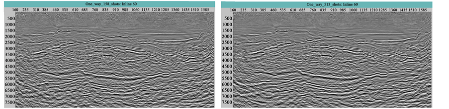 After applying RTM in the seismic data of the work area, single-shot migration section and 3D migration stack section have been obtained. From the result of migration, the distribution of reflection layers is reasonable, waveform is well and SNR is high. The stack process of RTM is as shown in Figure 4.
