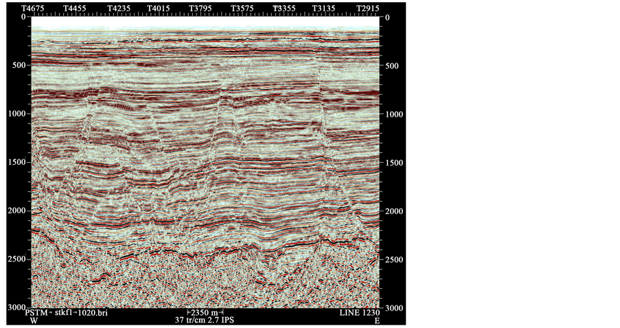 After RTM, the 3D seismic result P(x, z, t) has been obtained. Through applying appropriate imaging condition and stacking each shot record, the migration sections would be gained, as shown in Figure 1.