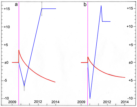 At a superficial view, Figure 9 may look like recording a sea level acceleration (of +0.152 mm/yr2). A more correct analysis reveals that it records a pre-seismic relative sea level rise (partly due to subsidence) of −2.21 ± 0.81 mm/y [25] , a somewhat unclear co-seismic sea level fall (due to uplift) of 5 - 8 cm, and post-seismic sea level rise of 19 - 22 cm within a year (due to subsidence and gravitational effects) followed by variations around a seemingly stable level during the last 6 years.
