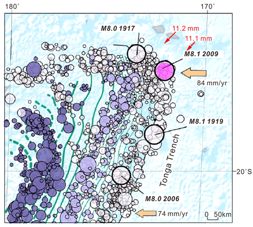 The Kermadec-Tonga subduction zone (Figure 1) is a part of the notorious “Pacific Ring of Fire” named for its high seismic and volcanic activity in association with plate collision and subduction at a rate of about 24 cm/yr [1] [2] [3] [4] . Therefore, it is no surprise that the Tonga-Samoa region has experienced numerous high magnitude earthquakes in recent times [5] [6] .