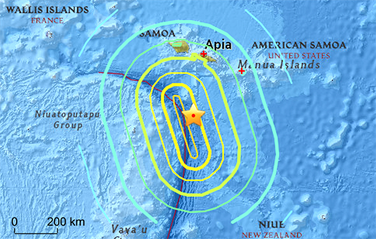 The earthquake magnitude (Mw 8.1) and geographical extension reaching far beyond the Samoa Islands (Figure 3) imply that direct effects are likely to have affected both land and sea levels in the Samoan Islands.