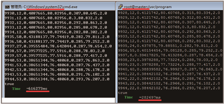 Figure 6 shows the time consumed by executing the same program in a stand-alone node and in a distributed environment, which is 616,273 ms and 282,697 ms respectively. Here, the optimization of the algorithm, compiler selection and hardware device performance differences and other factors are considered comprehensively, and only described from the qualitative perspective, the use of distributed computing can reduce or significantly reduce the time spent on large-scale data processing to improve the overall performance of the system to a certain extent, thus the feasibility of using the big data technology to realize the petrophysical data mining is verified.
