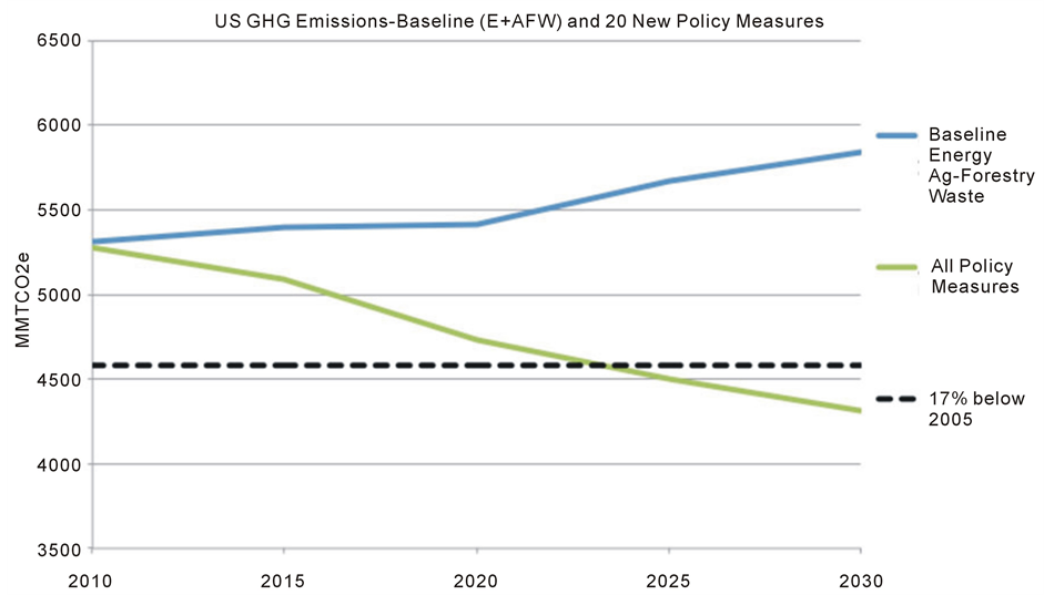 This paper also provides updated baselines for national carbon emissions and associated energy, economic, and resource activities as a basis for incremental impact analysis of 20 new GHG mitigation and sequestration policy options. Statistical analysis of US Energy Information Administration carbon forecasts and related eco- nomic, energy, and policy data shows that a majority of the downward shifts in US carbon baselines can be at- tributed to state and federal energy policy actions, and that carbon emissions are not necessarily captive to ex- ogenous changes in the economy or energy supplies [5] .