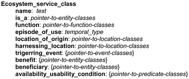 Figure 2. A template of the ecosystem service class (curly brackets denote sets).