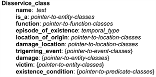 Figure 3. A template of disservice class (curly brackets denote sets).