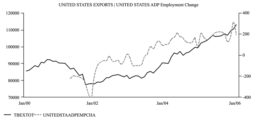 The main feature of US-Jordan FTA is the nature of soft with respect of labour. “Strive to ensure” in Article 6 indicates the non-binding obligations to enforce labour principles set forth in parafigure 6, such as “acceptable conditions of work with respect to minimum wages”6. Bolle claims that Jordan would “have no measurable impacts on total US exports, total US imports, US production, or US employment” (Bolle, 2001) . However, the Figure 27 shows that from 2000 to 2005, both the exports and ADP (Automatic Data Processing) employment witnessed a significant increase indicating the improvement of employment condition.
