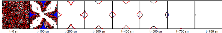 The model is established that there’s a total of 10,000 people are evacuated and four exits, which respectively are 3, 6, 8 and 10 meters in this case and with a velocity of 1.2 m/s.