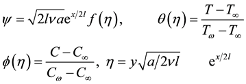 where the continuity Equation (1) is satisfied identically. A similarity transformation is defined as [20] follows