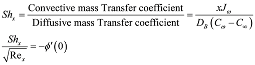 The Sherwood number (Sh) is also called the mass transfer Nusselt number. It represents the ratio of convective to diffusive mass transport