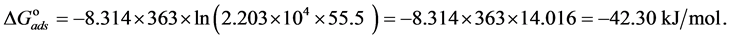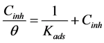 where Cinh is the concentration of inhibitor (mol/L), θ is the surface coverage and Kads is the equilibrium constant of the adsorption process.