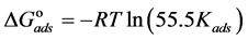 The adsorption-desorption equilibrium constant Kads was determined from the inverse of the intercept of the Langmuir isotherm which equals 2.203 × 104 L/mol for Zuc and 1.956 × 104 L/mol for Zuc + NaCl. The free energy of adsorption (