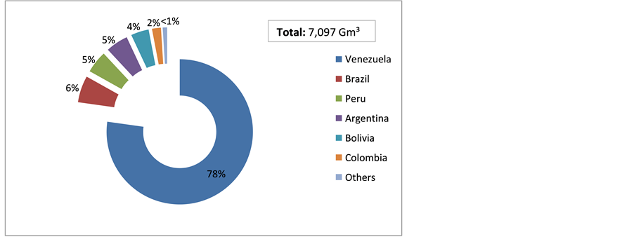 Figure 3. Regional distribution of proved reserves of natural gas in South America in 2010.