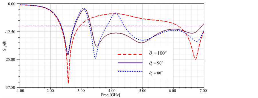 According to previous research, fractal fan-nested antenna with the fan unit in different sizes will have an effect on the reflection loss of multiband, and the mainly factors that influence the pass-band center frequency and bandwidth are the height of the nested fan and vertex angles. Below we will change the height and angle of the sector, and analyze how these two variables affect the performance of the antenna.