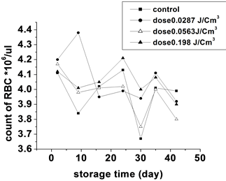 favored process for getting the information about the functional state of the blood during storages days for control and irradiated samples as shown in Table 2.