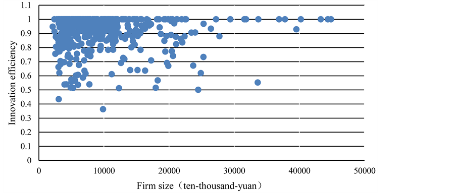 Figure 2. Scatter plot of firm size and innovation efficiency.