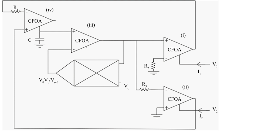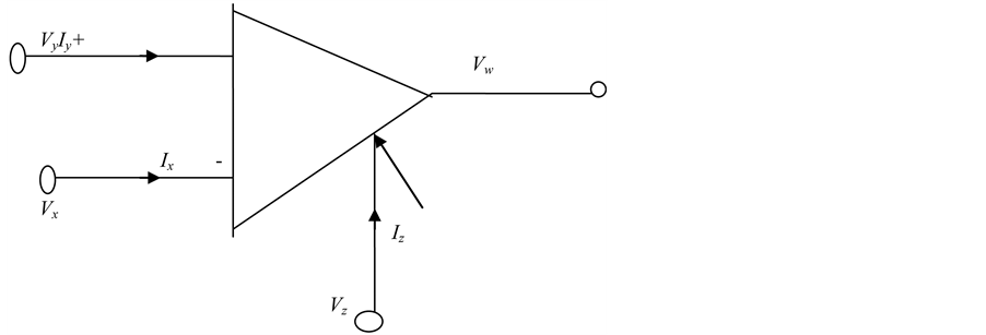 As shown in Figure 1(a). The x and y terminal of CFA are denoted by (−) sign and (+) sign respectively. A CFA is equivalent to a plus type conveyor with a voltage buffer and is very suitable building block for realization of active circuit.