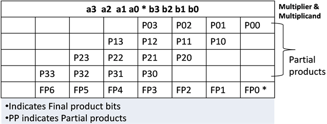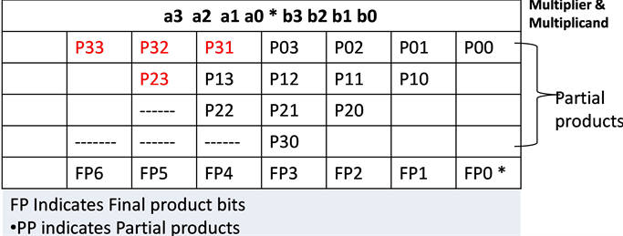 Figure 7 shows the pictorial representation of addition of partial products their intermediate sum and carry bits of various levels to get their final product.