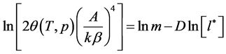Next, using formula (2) and the values obtained from formulae (13) and (14), one can determine the value of the fractal dimension D as follows: