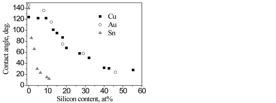 with a wide composition range. Silicon carbide’s wetting properties were extensively investigated because of its use as a structural material in high temperature applications such as reinforcement in metal-matrix composites [9] .