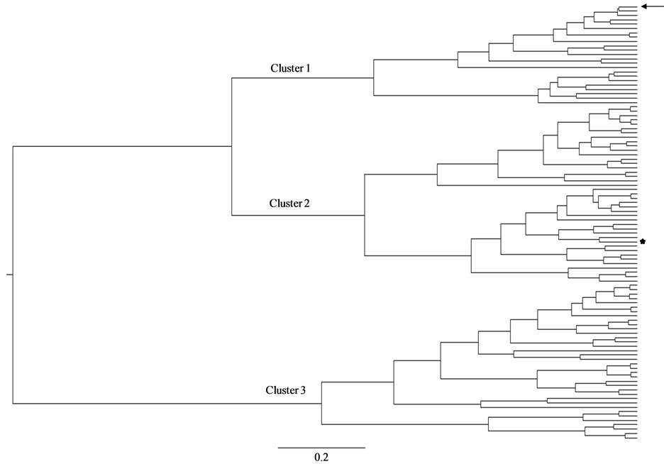 - Tamura, K., Peterson, D., Peterson, N., Stecher, G., Nei, M., Kumar, S. (2011) MEGA5: Molecular Evolutionary Genetics Analysis Using Maximum Likelihood, Evolutionary Distance, and Maximum Parsimony Methods. Molecular Biology and Evolution, 28, 2731-2739. http://dx.doi.org/10.1093/molbev/msr121