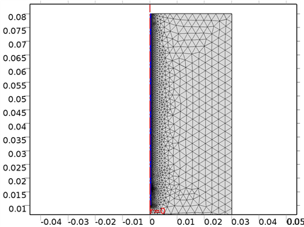 Figure 2. The COMSOL Mesh model within 3 mm.