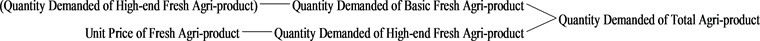 2) The demand for fresh produce includes the demand for basic fresh produce and high-end fresh produce (Figure 3). The demand for high-end produce is affected by the price of fresh produce and it is in line with the limits of SD boundary model 4.
