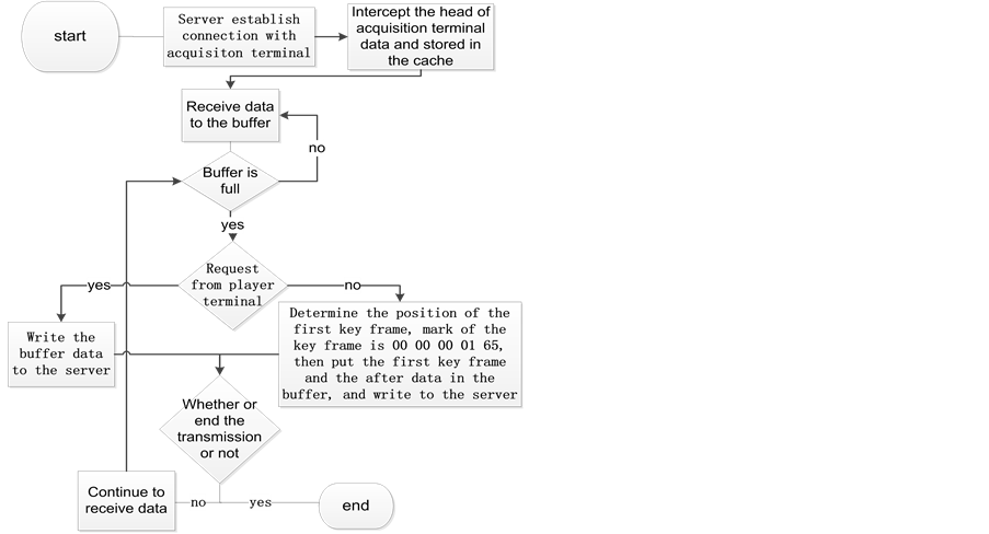 corresponding acquisition terminal. It is required to allocate the audio and video interfaces between the server and acquisition terminals, and to handle multithreads. In addition, handling of the client session and task scheduling are also needed.