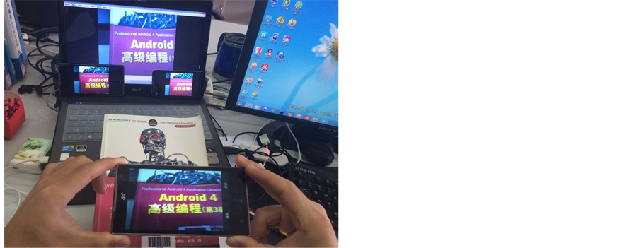 Information displayed after start-up of streaming media server is shown in Figure 8. When a data acquisition client connects, the server allocates an UDP port for data transmission and registers the information and data source of the client. The server saves the data from the acquisition client and at the same time output the client name and ID in the server queue. Outputing information of the server is shown in Figure 9. When a playback client connects, the server parses the request and sends video data in real time to the client. Outputing information is shown in Figure 10. The video data can be played by live video website, mobile client and standard video player. The effect of the live web pages is shown in Figure 11. Mobile live broadcast with a PC and two handset clients is shown in Figure 12. When multiple acquisition terminals are used, a playback client can select one of them to display and the others will be stored in database as history video data for future browsing. The