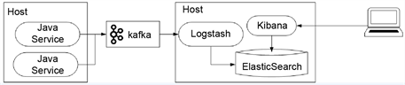 As shown in Figure 3, this was the second version, you can see in the production environment of the Java service side, Host has no Logstash, all the log was directly written in Kafka, Logstash consume these logs from Kafka and write inside ElasticSearch [7] .