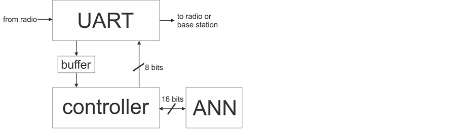 In a top level VHDL modular design, our propose method can be described as a controller, a transceiver and ANN module, all implemented in each anchor node. The controller is modeled as a Moore finite state machine that is responsible for managing data transmission and ANN control. The implemented system can be seen as shown in Figure 3.