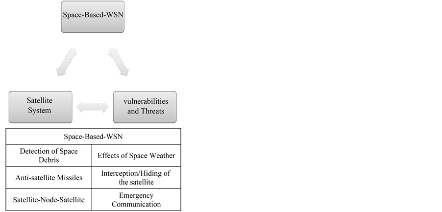 of WSN for detection of various vulnerabilities like detection of debris, effects of space weather and emergency communication etc. in satellite system.