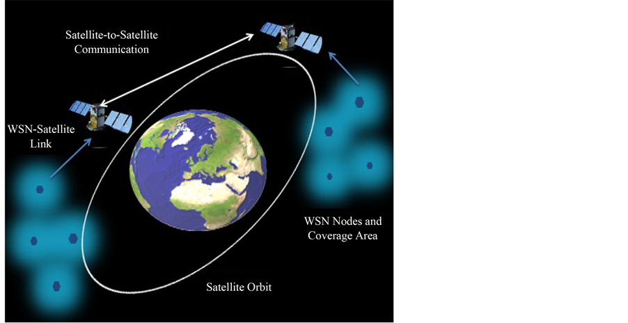 We proposed satellite-node-satellite communication way to communicate (Figure 4). In this method two satellites can communicate with each other with the help of common connected WSN node. An active satellite can find or detect the inactive satellite with the help of nearby WSN nodes. An efficient link budget is required for the radio signal where WSN can directly communicate with the satellite [16] . While already satellite-satellite communication takes place in between the satellites. This technique will help to locate the lost or completely failed satellite in space with the help of near satellite and WSN nodes in that orbit.